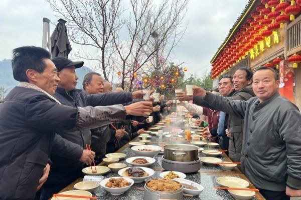 在当天的年夜饭上,村民、帮扶企业、当地干部、游客等欢聚一堂,交流致富经验、分享发展成果的喜悦,喜气洋洋迎接新年的到来。(任峰)