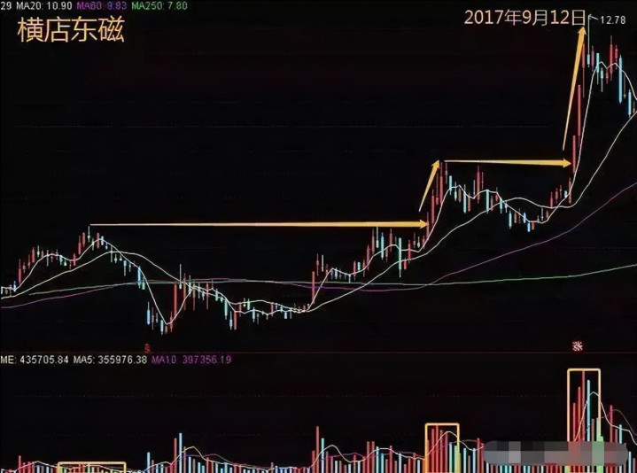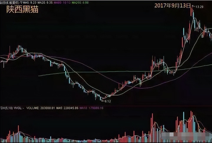3、选择黑马股的绝招之一是根据成交量变化,能够大涨的股票必须有大的底部动力,否则不会大涨。底部动力越大的股票,则上涨力度越强